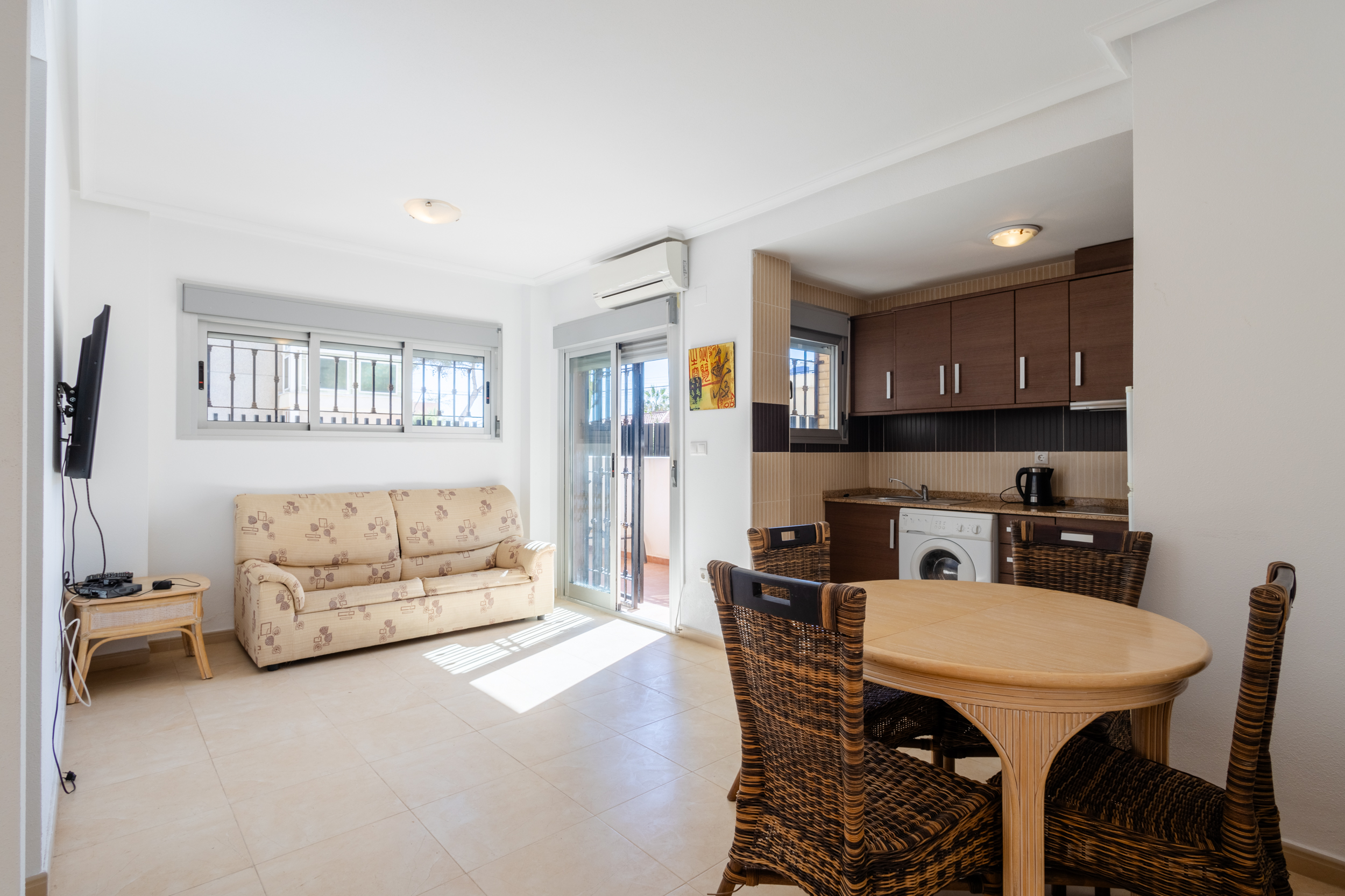 Cozy apartment with 2 bedroom, 1 bathroom and communal pool just 250 meter to the sea in Punta Prima, Orihuela-Costa. Discover this cosy apartment in the exclusive area of Punta Prima, Torrevieja, just 250 metres from the beach. With a constructed area of approximately 64 m², this property is the perfect choice for those seeking quality of life by the Mediterranean. APARTMENT FEATURES 2 spacious and bright bedrooms 1 full bathroom 20 m² terrace ideal for relaxing or enjoying al fresco dining Spacious and comfortable living-dining room Open and functional kitchen Garden areas and communal pool to enjoy the sun all year round Sold fully furnished and with appliances included Built in 2007 and in excellent condition PRIVILEGED LOCATION Punta Prima is one of the most exclusive areas of Torrevieja and Orihuela Costa, known for its tranquillity, security and proximity to all essential services: Shops, supermarkets, pharmacies and restaurants just a few minutes away. Shopping centres such as Zenia Boulevard just 10 minutes away by car. Only 40 minutes from Alicante Airport. Excellent road and public transport connections. BEACHES AND TOURISM The beaches of Punta Prima are famous for their golden sand and crystal-clear waters. In addition, you will be close to other spectacular beaches such as Playa de La Zenia (5 min), Playa Flamenca (4 min) and Cabo Roig (10 min). Torrevieja offers you endless tourist attractions: the Natural Park of the Lagunas de La Mata and Torrevieja, the Paseo Marítimo, the Marina, the famous market and the vibrant nightlife. In addition, its Mediterranean climate will allow you to enjoy 320 days of sunshine a year. A UNIQUE OPPORTUNITY TO LIVE OR INVEST Whether as a permanent home, second home or investment, this apartment has great potential. Don't miss the opportunity to live in a paradise by the sea. Contact us now to schedule a visit and discover your new home in Punta Prima. IBI: €122.52 COMMUNITY: €453.92 PER YEAR