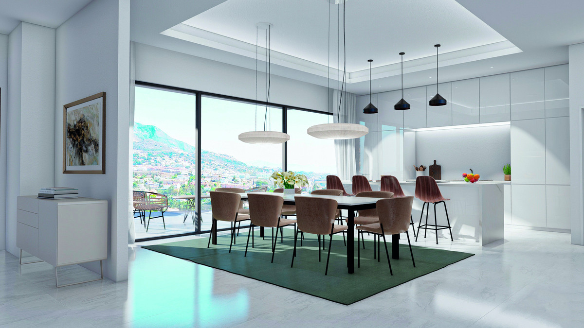 This unique and high-quality concept is located in Torreblanca, in the best location in Fuengirola, and offers a magnificent panoramic view of the Mediterranean Sea and the skyline of Fuengirola. The villa in this exclusive new development is divided into three levels. The villa have three bedrooms and a spacious living room, as well as an open, fully equipped integrated kitchen with a private terrace where you can enjoy breakfast while admiring the beautiful mountain views. The villa have several spacious terraces, an overflow swimming pool, parking spaces for two cars and a luxurious rooftop terrace with outdoor kitchen, offering stunning views over Fuengirola and the Mediterranean Sea. It is designed to work as a whole with luxurious solutions, taking into account the times of day and sunlight. The villa is equipped with a lift, making it ideal for people with reduced mobility. Located close to the cities of Fuengirola, Marbella and Málaga, Vista Linda is in a great location to enjoy culture, gastronomy, beaches, sports and shopping in Andalusia. All services and shops are within walking distance. The beach is just 5 minutes away and Málaga Airport is a 15-minute drive away. Several international schools are also located in the area. The Costa del Sol has more than 320 sunny days a year and has an ideal climate for living and enjoying. At Vista Linda, you will experience unique and unforgettable moments with family and friends.