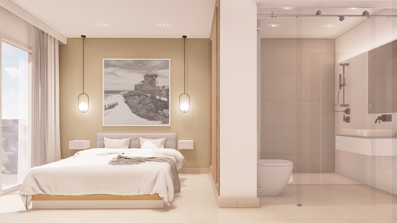 An amazing opportunity to own a Touristic apartment next to the sea in La Torre de la Horadada. These properties all have 3 bedrooms and 2 bathrooms and are fully furnished, with underfloor heating, air conditioning, lighting and also come with underground parking and a storage room. The resort has a spa with a heated pool, sauna, jacuzzi and thalassotherapy. The gym has a treadmill, spinning, multi functional trianing machine, bench and weights of different sizes. The ground floor properties have large gardens and views of the communal area, first floor properties have large balconies with views of the communal area and the sea & the penthouses have large balconies and a large sun terrace with private jacuzzi, designer pergola, artificial grass, summer kitchen & beautiful views of the communal are and the sea.