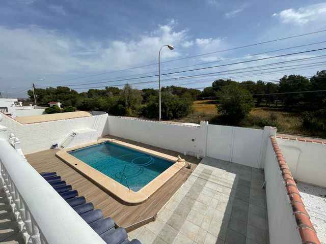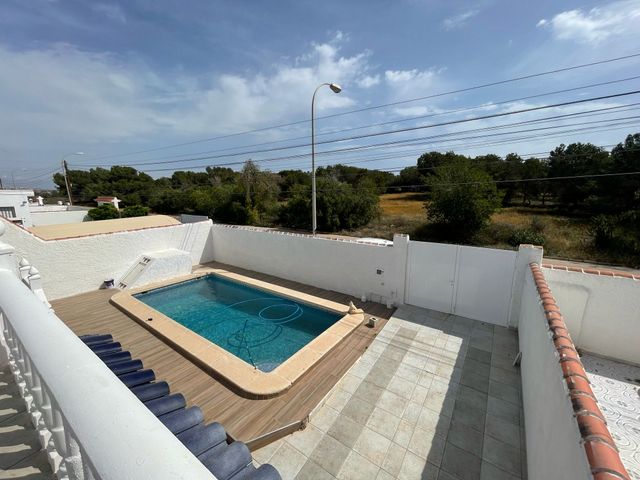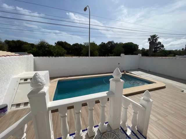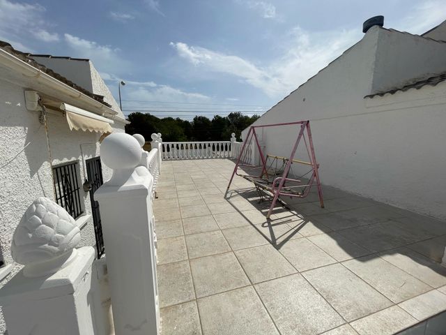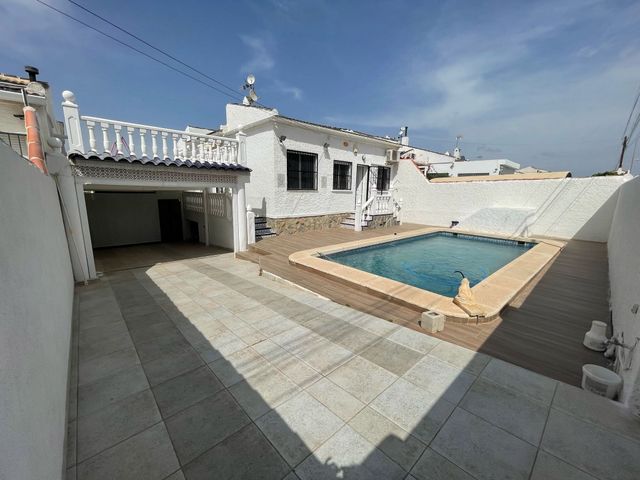 Semi-detached villa with 3 bedroom, 2 bathroom, garage and private pool in San Luis, Torrevieja. We present an opportunity in Torrevieja, in the charming area of San Luis. This 166-square-meter house is located just 780 meters from the idyllic salt lakes, offering a relaxing and peaceful atmosphere. The property has on the main floor: two double bedrooms, a renovated bathroom, a living/dining room, and a kitchen. The basement, which also has a separate entrance from the garden, contains one bedroom, one bathroom, a living room, a kitchen, and a possible dressing room. This property stands out for its exceptional extra features: it has a large garden and a private pool for warm days, a terrace from which you can enjoy pool views, a closed garage, and a covered parking space. Located in a quiet area, this property guarantees an environment of privacy and security, surrounded by all the necessary amenities such as buses, shopping centers, doctors, schools, proximity to the coast, hospitals, supermarkets, and children's playgrounds, not to mention the unobstructed views that invite tranquility. The location is ideal for exploring the beauty of the Costa Blanca, with convenient distances to interesting sites and nearby cities: - Alicante: Less than 50 minutes by car, a vibrant and cultural center. - Santa Pola: Just 30 minutes away, known for its stunning salt flats, beaches, and natural parks. - Elche: Approximately 40 minutes by car, famous for its historic palm groves, which have been declared a World Heritage Site. This villa offers the opportunity to live in a peaceful setting, combining the convenience of being close to amenities with the charm of Mediterranean life.