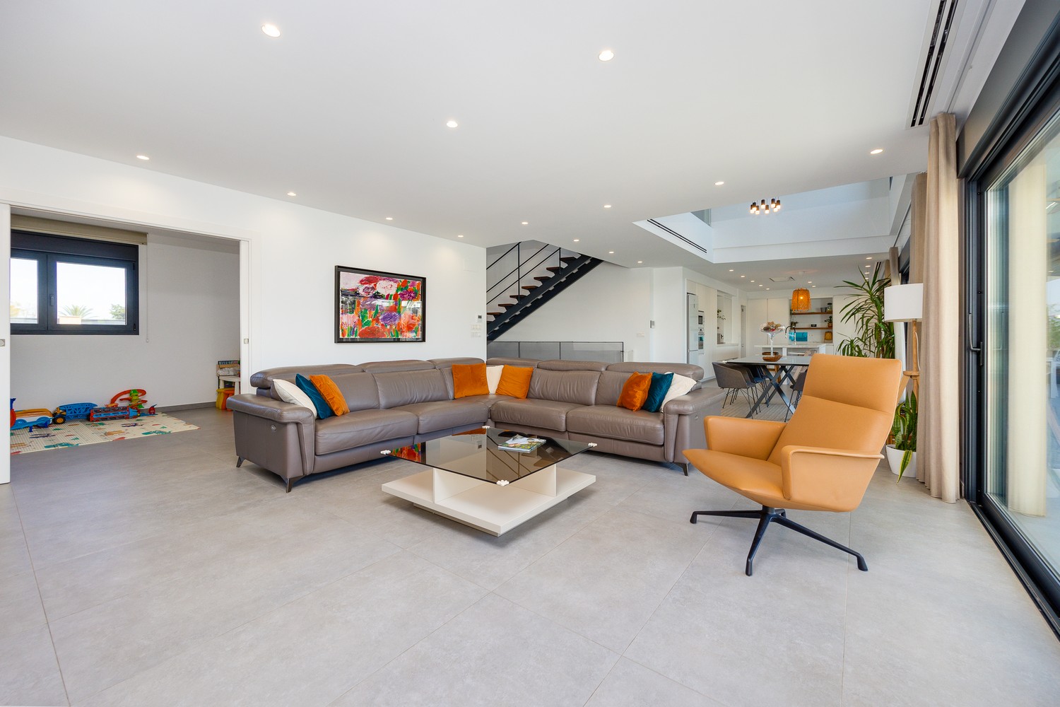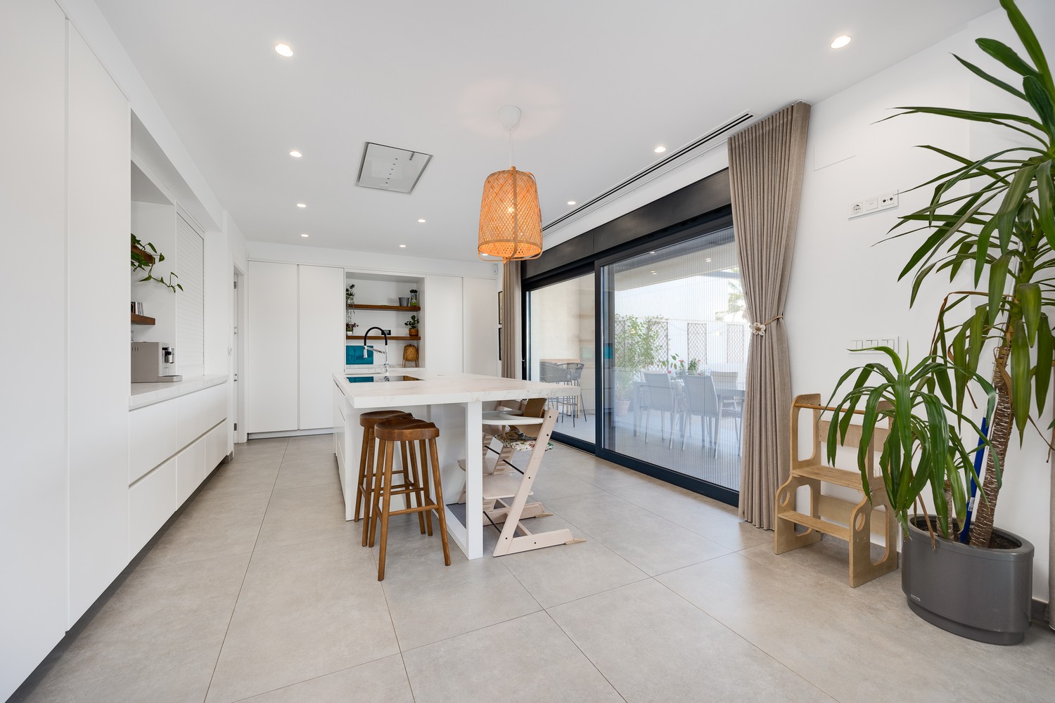 Welcome to a majestic home in San Pedro del Pinatar, where elegance meets comfort in every corner. With a total area of 597 square meters and 400 square meters of living space, this property built in 2019 offers an oasis of luxury and modernity. Upon entering, a space exuding sophistication and spaciousness is revealed. With 4 bedrooms and 5 bathrooms, including an en-suite bathroom, each room is designed to maximize comfort. The living room, with its cozy fireplace and open views of the pool, is perfect for entertainment or relaxation. This residence stands out for its exclusive features, such as a refreshing pool, a private gym, and a south-facing terrace with chill-out area and barbecue. The tiled floors and built-in wardrobes add a touch of luxury. With an advanced security system, garage, and central heating, this property is a safe and luxurious haven. Discover the essence of comfort and style in this extraordinary home. The house, with an energy rating of B, is distributed over two floors plus a basement where the main rooms are located. Its open kitchen with a bar overlooking the pool and chill-out area is noteworthy. The entire house is oriented towards outdoor living to enjoy the Mediterranean climate and lifestyle, without losing an ounce of privacy. Due to its location, it is perfect for practical city living, being surrounded by all the necessary minimum services in a tranquil environment facing a park, in a new expansion area with new and modern quality homes in the locality of San Pedro.