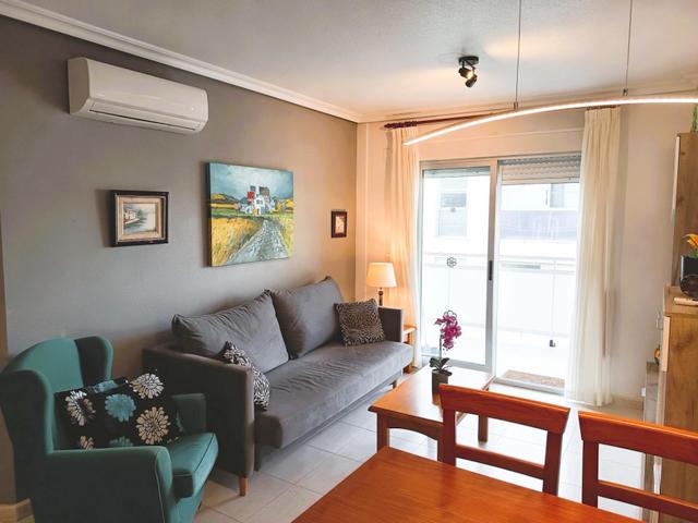 Penthouse apartment with sea views, 2 bedroom, 1 bathroom and private solarium in Aguamarina, Orihuela-Costa. South-facing penthouse with a spacious 65 m² private sun terrace and sea views, located around 500 metres from the beach in Aguamarina / Cabo Roig. Situated in a tourist accommodation building, it allows for holiday rentals without the need for a licence, making it a very attractive investment opportunity. The property has 2 bedrooms, 1 refurbished bathroom with shower, a kitchen opening onto the living-dining room and an additional terrace, with a practical layout suitable for both owner-occupation and rental. It includes an underground parking space and access to communal areas with a swimming pool, reception and children’s play area – amenities that simplify management and enhance its appeal as a rental property. Located next to the well-known Cabo Roig ‘strip’, with all amenities, restaurants and leisure facilities just a short walk away, yet in a quiet setting. An ideal property for combining investment returns with personal enjoyment, thanks to all its features: - Close to the sea, a 5-minute walk - Tourist building with swimming pool - Fantastic 65m² private sun terrace - Sea views - South-facing - Underground parking - In one of the best leisure and amenities areas of Orihuela Costa.